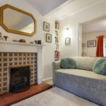 Bedroom 2, double bedroom with original pretty tiled feature fireplace, double glazed window to the front.
