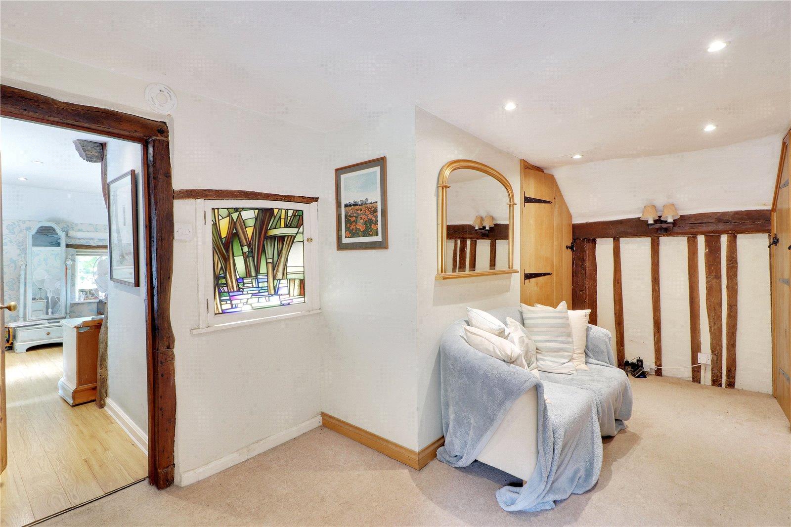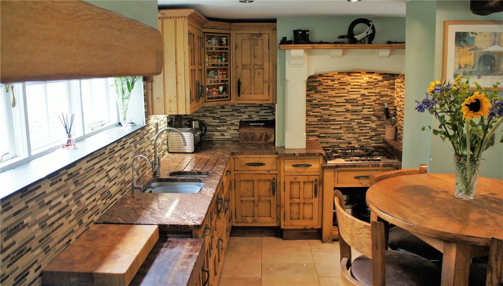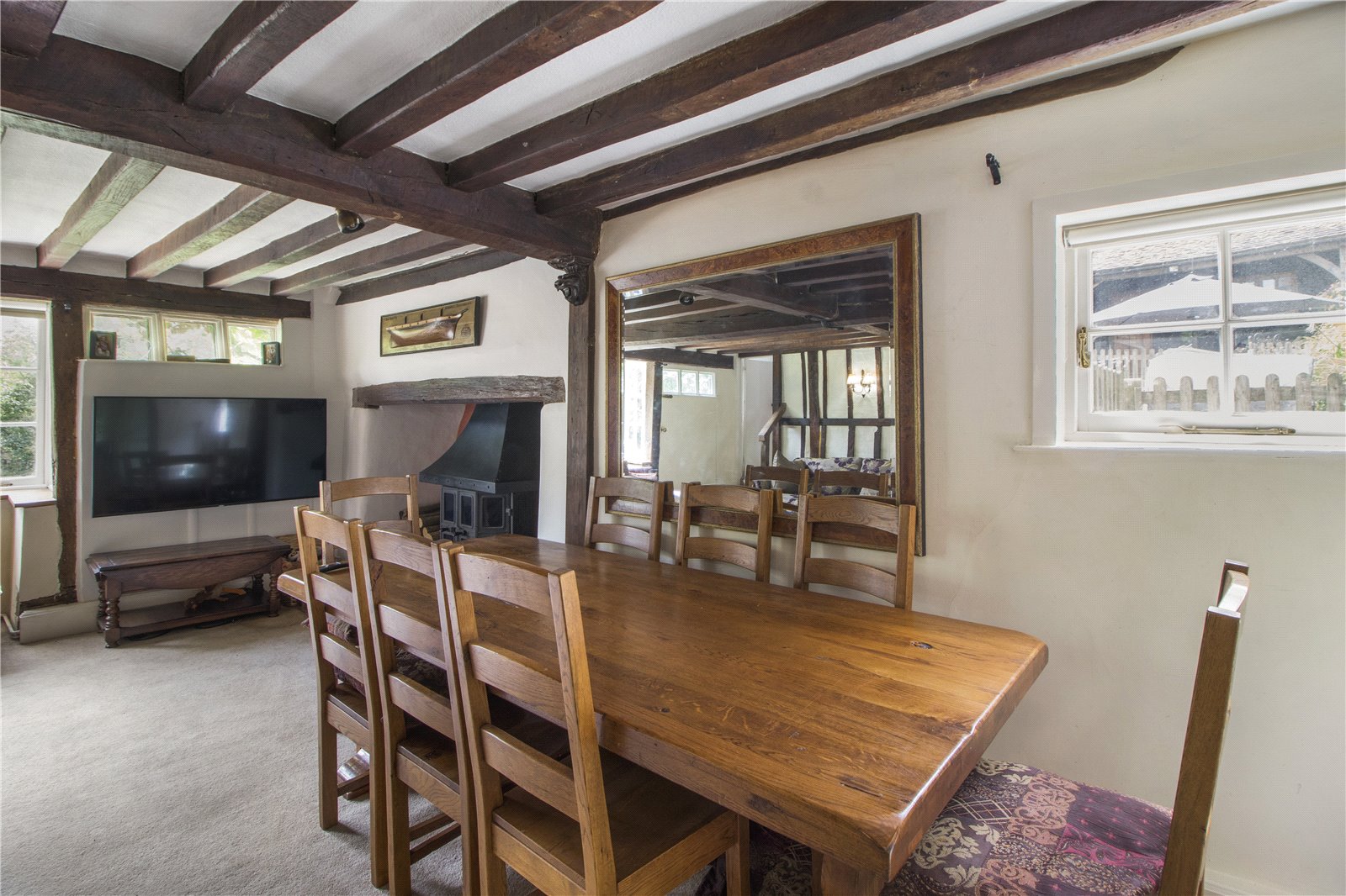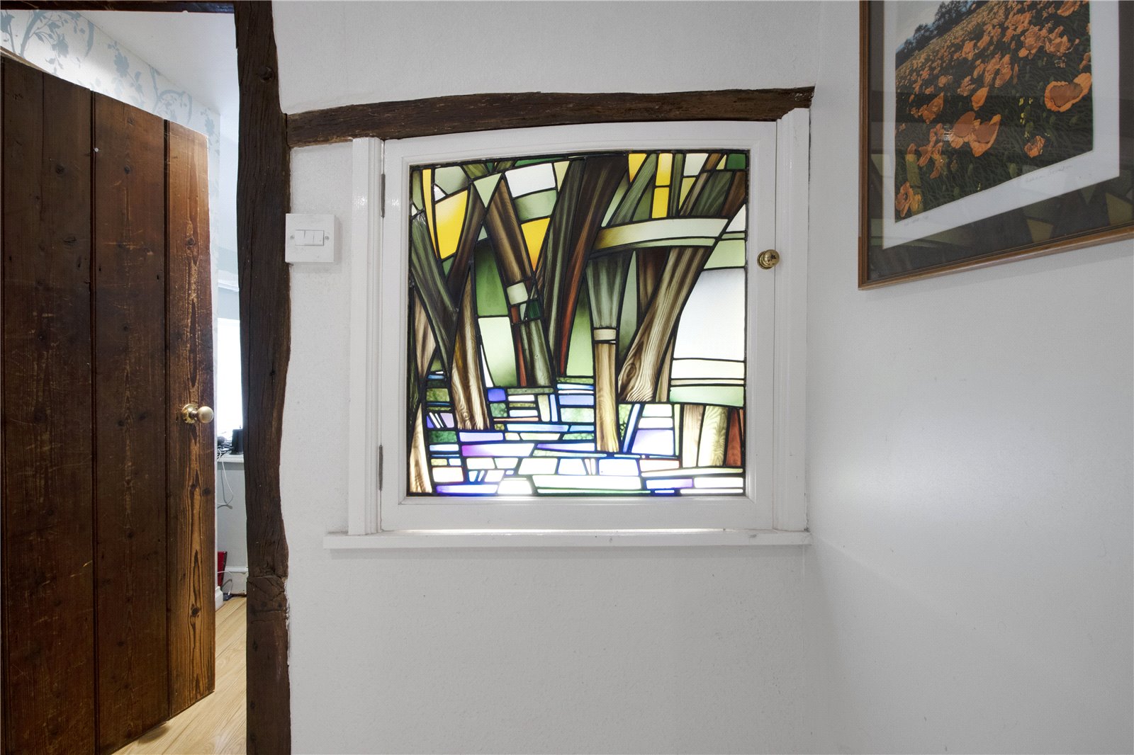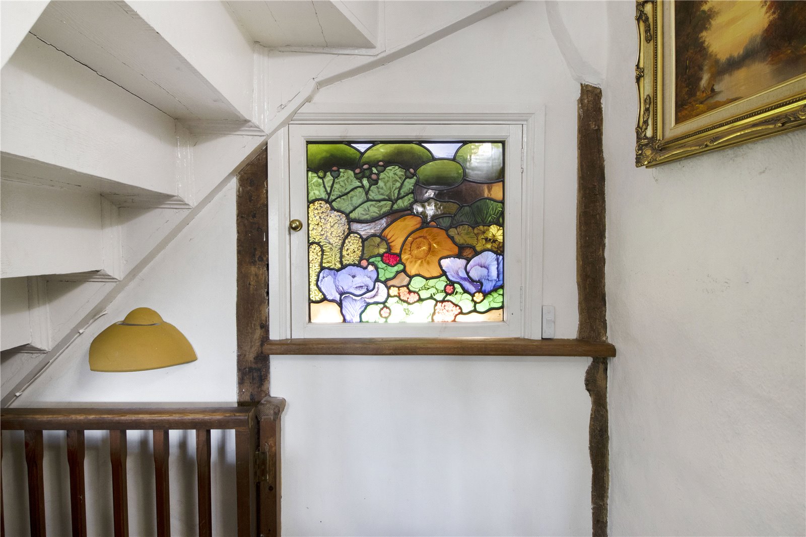 Internal features include exposed timbers to walls and ceilings, inglenook fireplace with bressummer and wood burner. A fascinating display of stunning hand painted leaded light-stained glass, and wide gauge latch doors are just some of the lovely features in this classic period home.