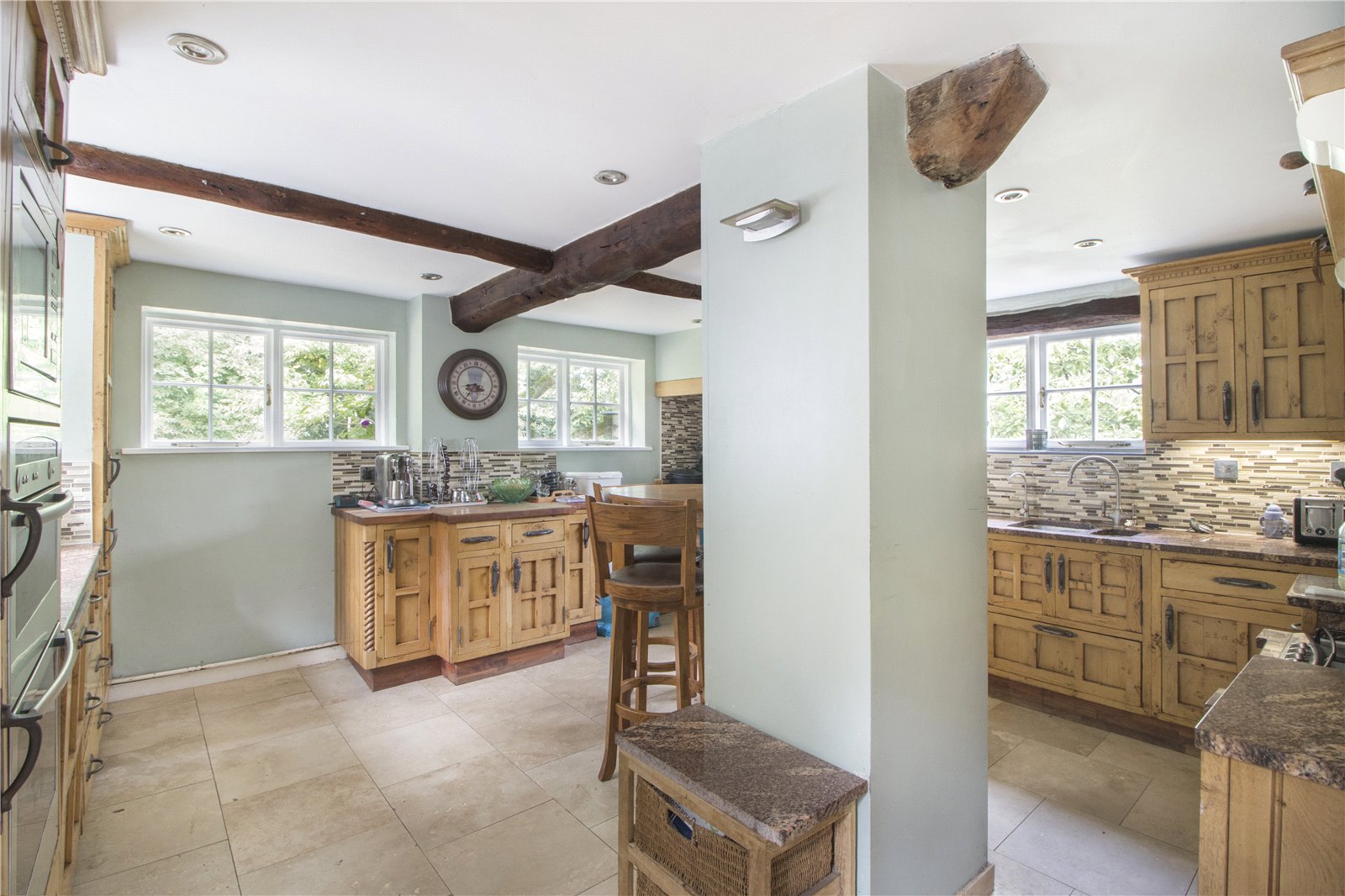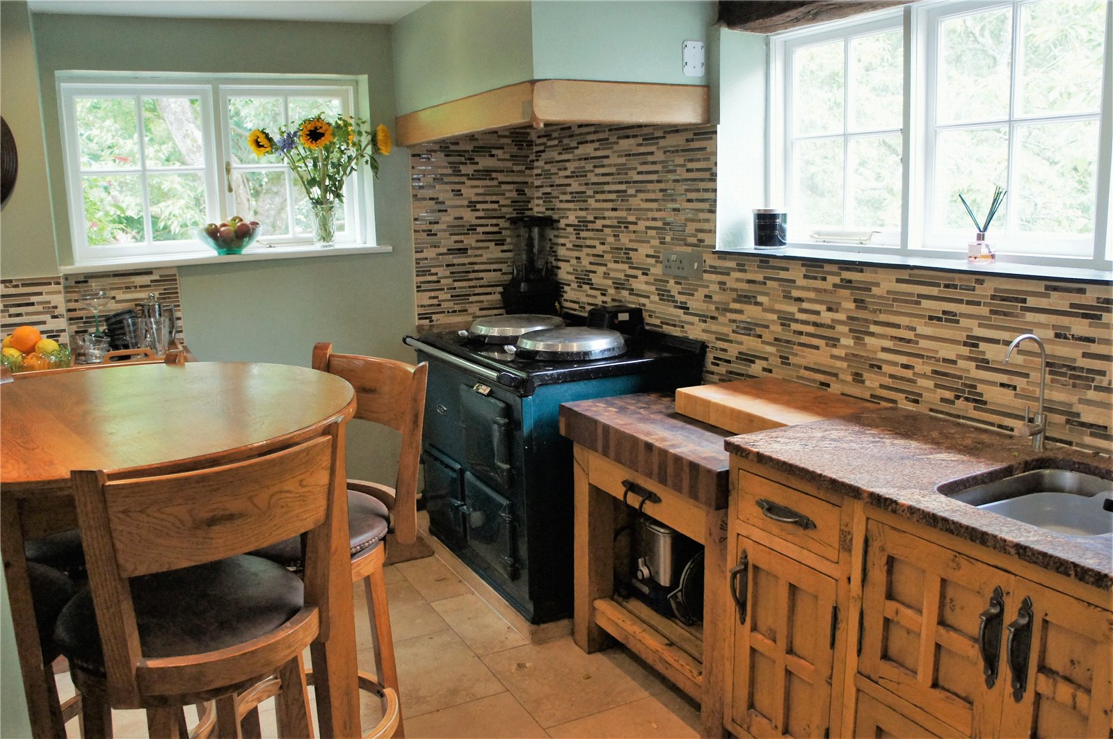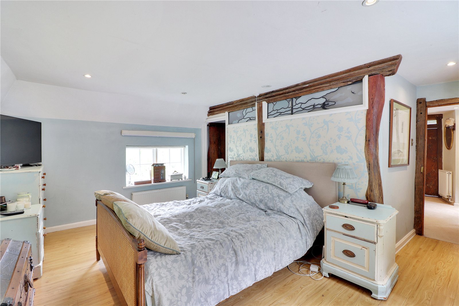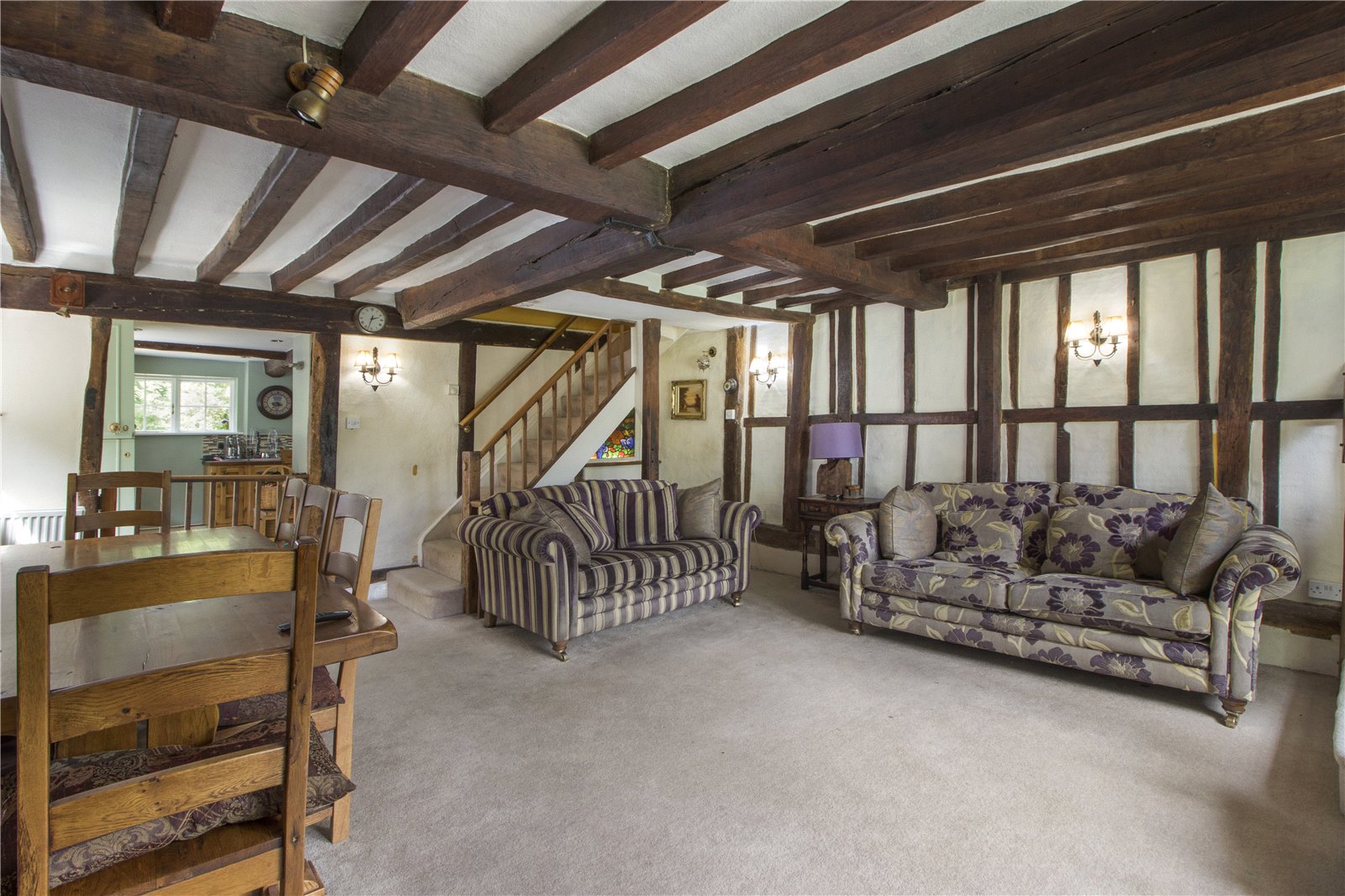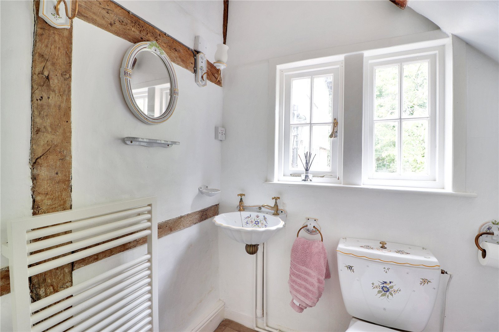 Internal features include exposed timbers to walls and ceilings, inglenook fireplace with bressummer and wood burner. A fascinating display of stunning hand painted leaded light-stained glass, and wide gauge latch doors are just some of the lovely features in this classic period home.