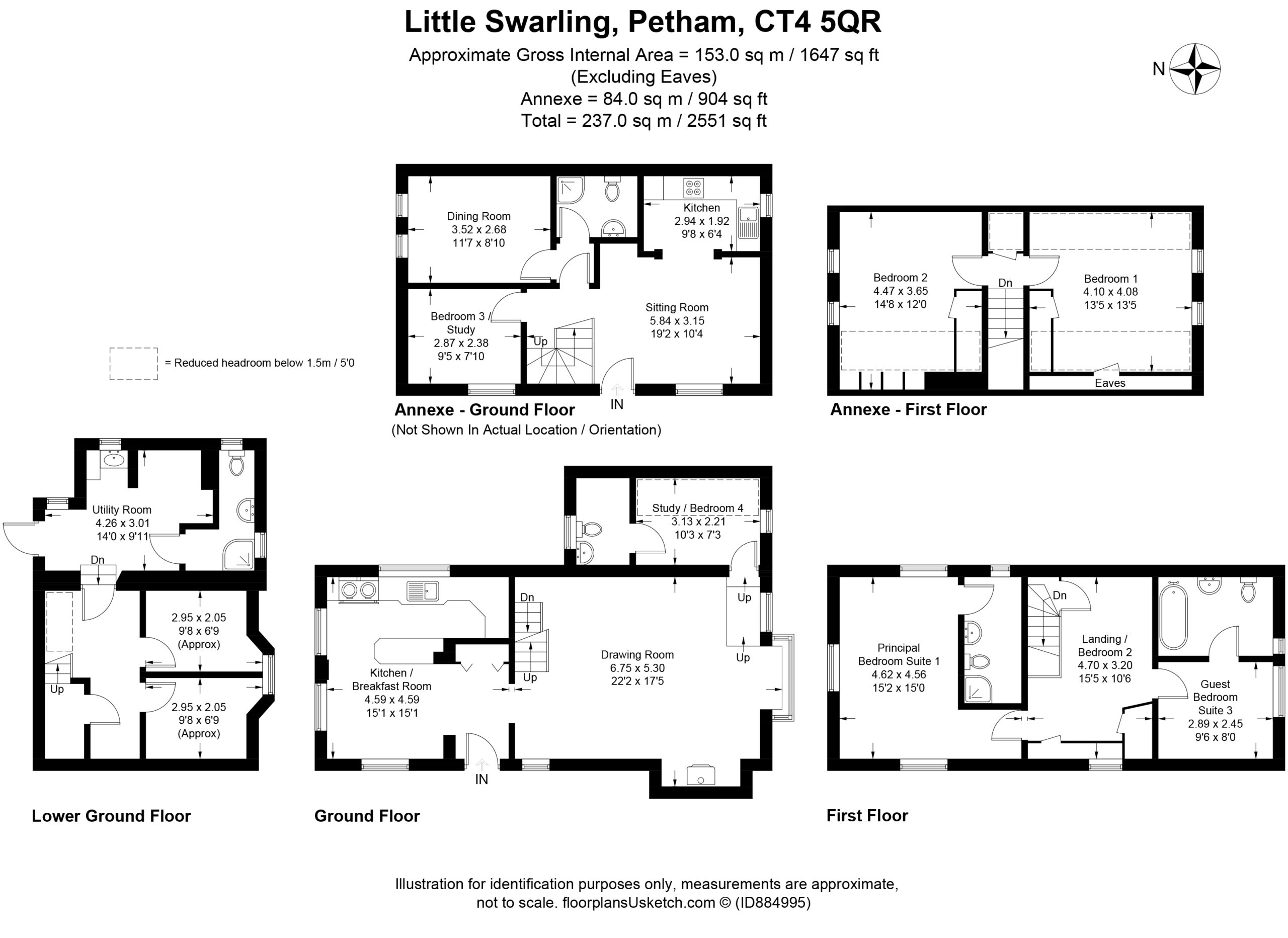 The accommodation is extremely versatile and is currently arranged with two bedrooms with en-suites to the first floor, and on the lower ground is a utility and beautifully fitted wet room, along with two further rooms currently used as bedrooms, or could be arranged as a dining room. In addition, there is a sitting room and bespoke Edwin Loxley fitted kitchen.